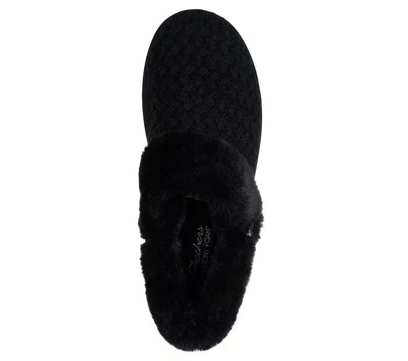 Enjoy laid-back cozy comfort all season long with Skechers Cozy Campfire - Frosty Promise. This leisure slipper features a quilted sweater knit upper with faux fur trim and lining, plus a cushioned Skechers Memory Foam™ comfort footbed.